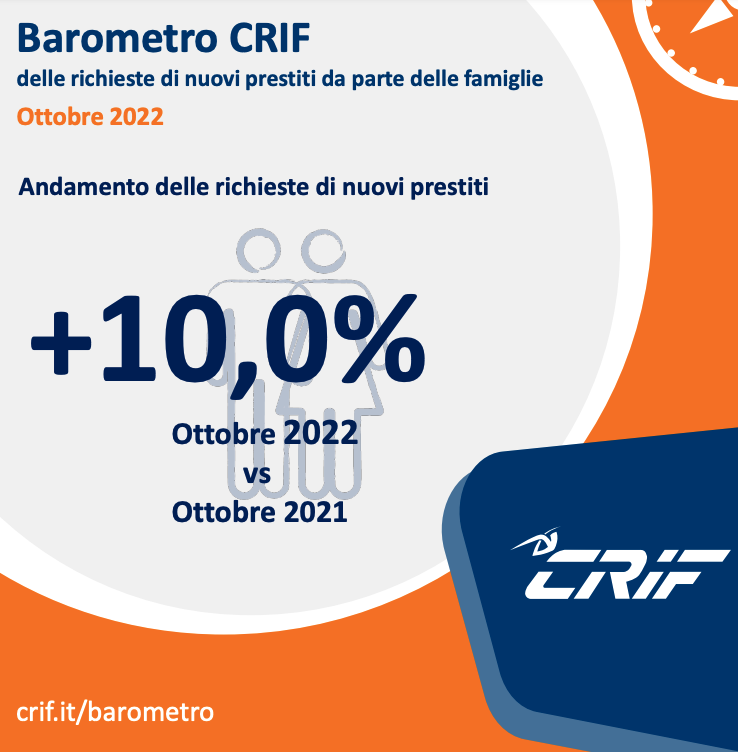 Il pesante aumento dell’inflazione inizia ad influenzare sempre di più il comportamento d’acquisto degli italiani: è questa la conclusione che sembra suggerire l’ultima analisi del Barometro Crif su fonte Eurisc. Secondo i dati, rilasciati qualche giorno fa ed aggiornati ad Ottobre, sono sempre di più le famiglie che richiedono un prestito per far fronte ad un costo della vita in continua crescita.